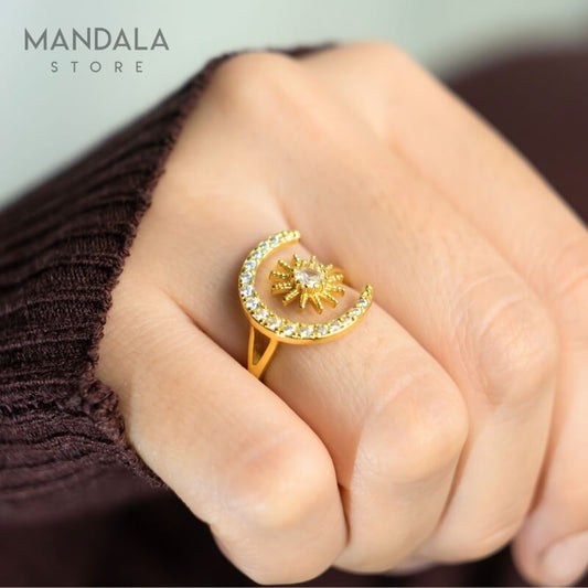 Anillo Sol y Luna Creciente, Plata de Ley - Oferta 2x1